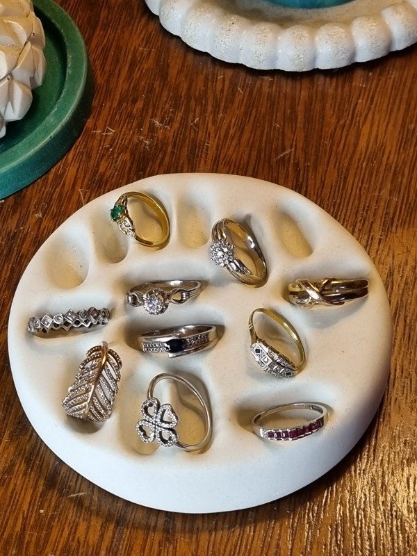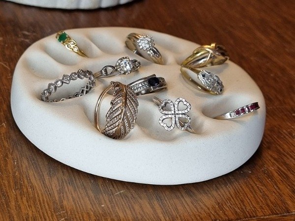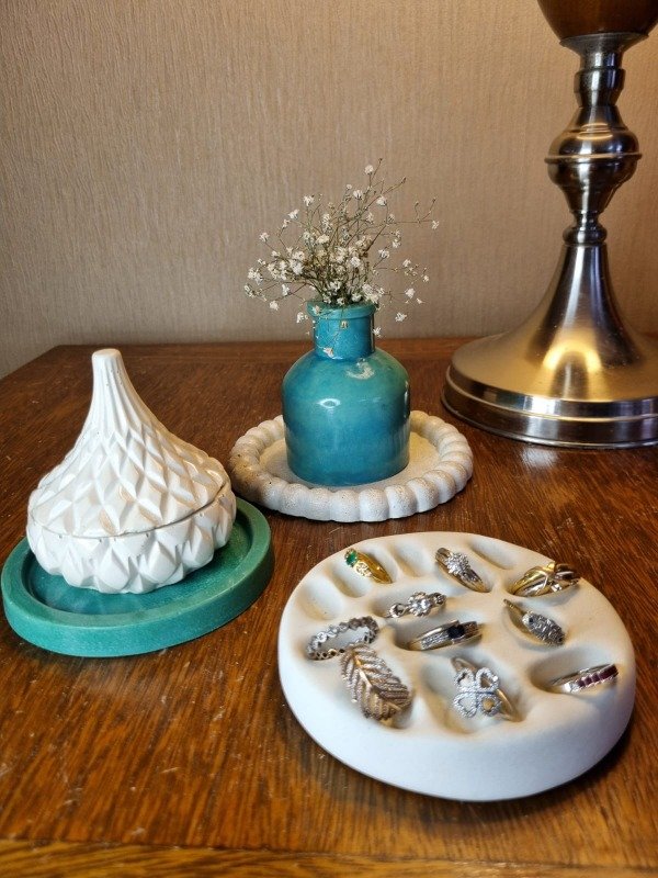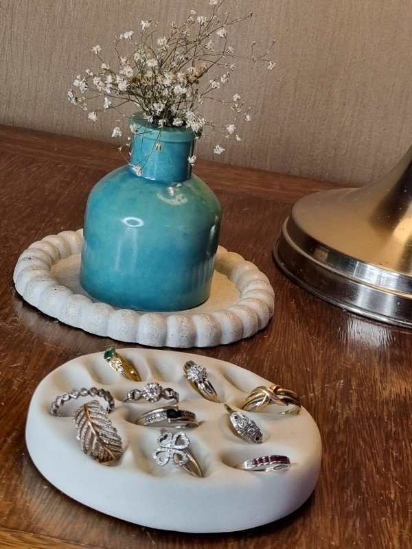 La Bandeja Porta Anillos realizada a mano en cemento pigmentado es más que un simple accesorio; es una declaración de estilo que refleja tu personalidad. Aporta un sentido de orden y sofisticación, ideal para quienes buscan optimizar su presentación de joyas en exhibiciones o en el hogar.