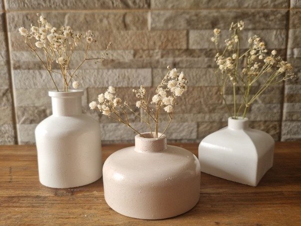 El Floreros Petit Liso se adapta perfectamente a cualquier espacio, ya sea en una mesa, estante o ventana. Fabricados en concreto, son apto para flores naturales.
